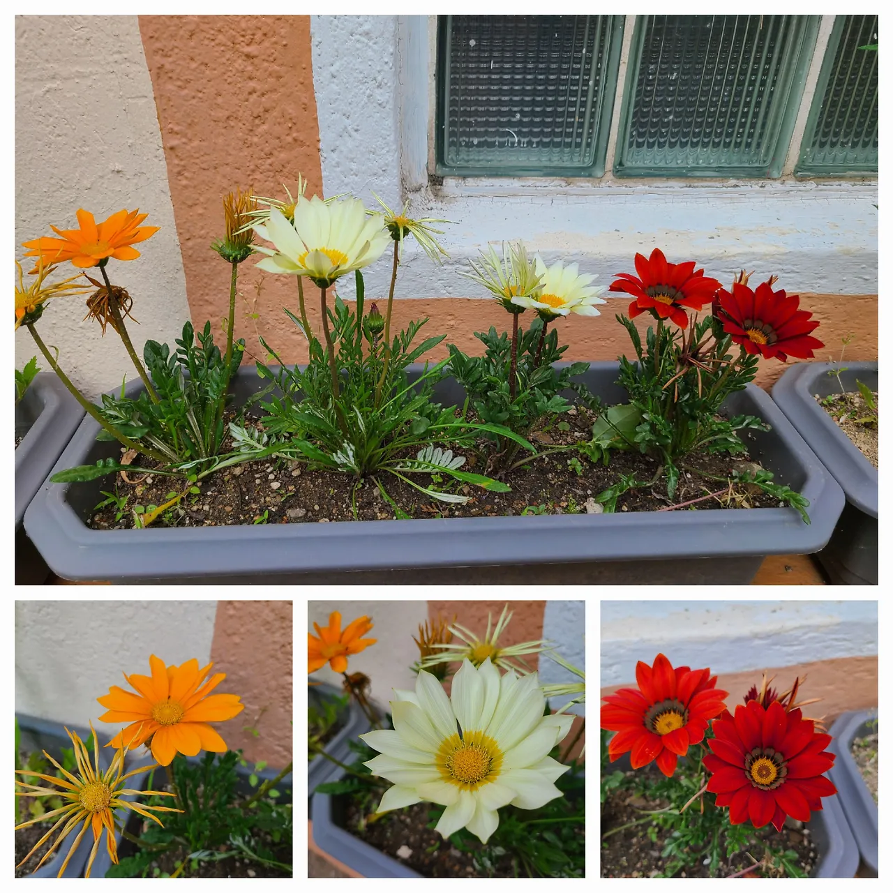 두 번째, 선명한 빨강, 아이보리, 주황색 꽃은 가자니아 크랩시아나, 원산지가 남아프리카공화국이라고 한다. 남아공 하면 중국 다롄에서 함께 근무하다가 본국으로 돌아간 원어민 선생님이 생각난다. 어느 날 선생님이 안부를 물으며 사진 한 장을 보내셨다. 그 사진에서 이런 색의 꽃들로 가득 찬 들판을 본 게 기억난다.