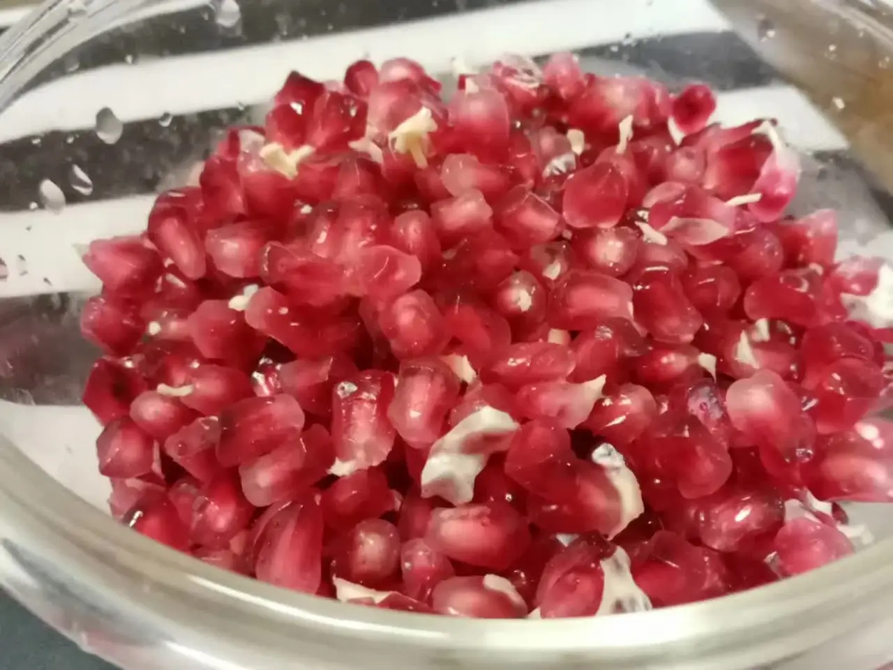 씨를 품은 투명한 구슬 같은 것이 서로 몸을 맞대고 빽빽이 들어서서 함께 자줏빛을 띠는 석류 열매.