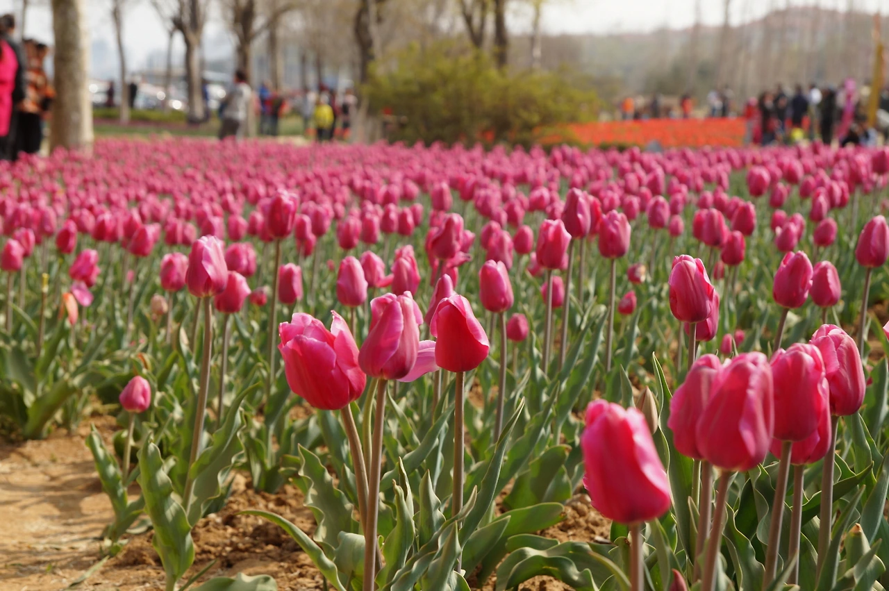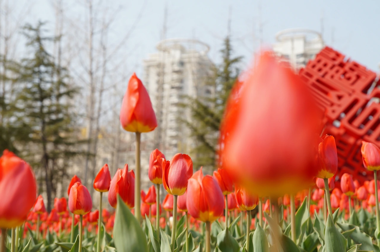 매년 4월이면, 옌타이 래산구 정부 건물 아래쪽 공원에 오색찬란한 튤립밭이 출현한다.