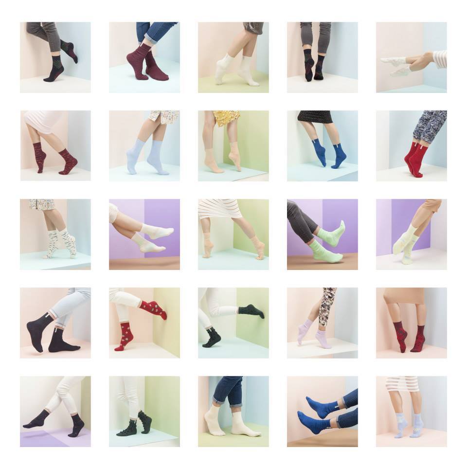 앙카가 디자인한 양말 컬렉션의 첫 번째 테마는, 다름 아닌 식물이다. "어릴 적, 허바리움(herbarium)이라고 불리는 식물도감을 직접 만들곤 했었거든. 꽃과 풀을 바로 책 위에 붙이기도 하고, 아님 수채화로 그리기도 하고. 어느 날 조카랑 놀다가 영감을 얻었어. 우리가 구축하고자 하는 '캠핑'의 브랜드 이미지랑도 매우 잘 맞는 것 같아."