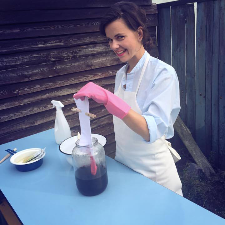 직접 양말을 천연 색소로 염색 중인 앙카 @ 출처 _ 앙카 개인 소장