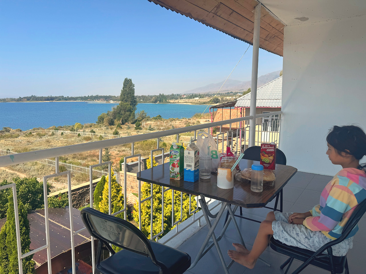숙소 후보가 두 곳으로 좁혀졌다. 하나는 창밖으로 설산이 보이고 수영장이 있는 곳, 다른 하나는 이식쿨 호수를 정면으로 내려다볼 수 있는 넓은 방과 발코니가 있는 곳이었다. 한쪽은 호수를 포기해야 했고, 다른 쪽은 수영장을 포기해야 했다. 장점만 있는 선택은 없었다. 그래서 더 쉽게 결정을 내릴 수 없었다. (가격은 둘 다 1박에 6만 원 대)