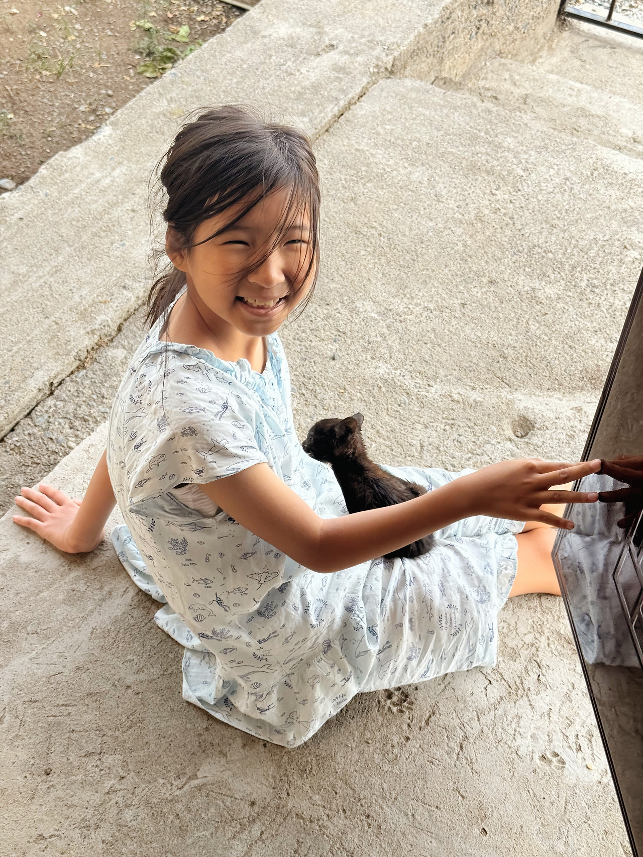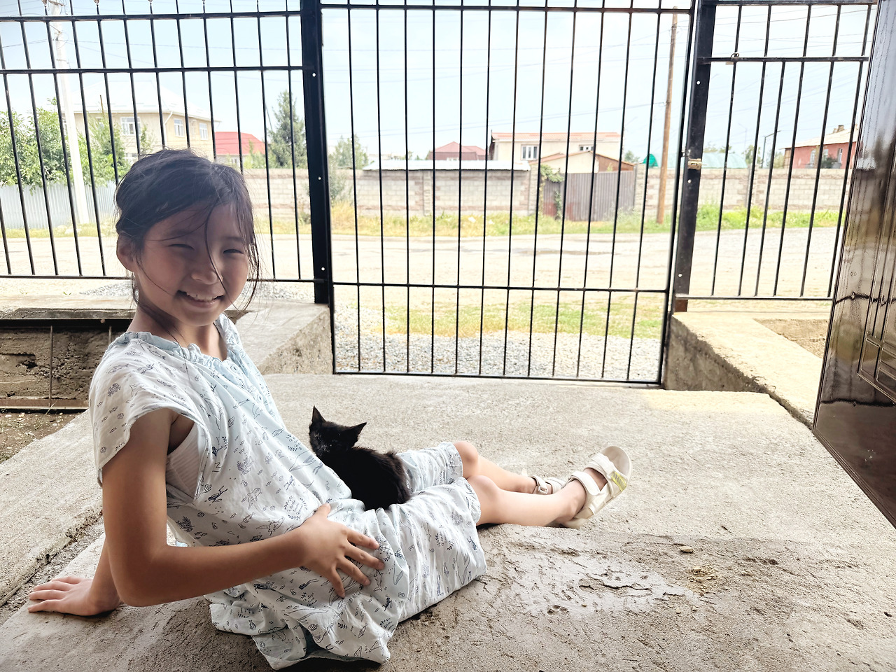 아침 식사를 마치고 마당으로 나오자, 다행히 고양이가 다시 돌아와 있었다. 아이의 얼굴에도 다시 미소가 피어났다.