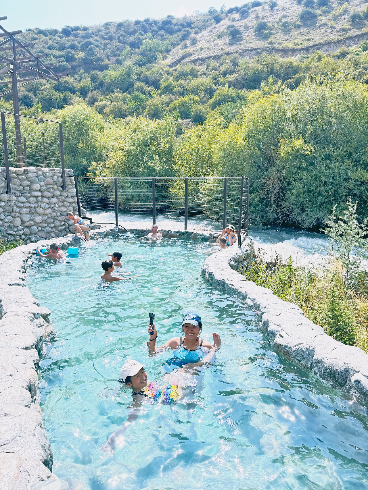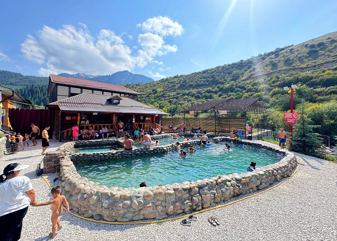 우리도 그 따끈함에 몸을 맡겼다. 김이 모락모락 피어오르는 물 속에 들어서는 순간, 지난 이틀의 무게가 녹아내렸다. 알틴아라샨에서 여덟 시간을 걸어내던 발걸음, 비를 맞으며 미끄러지던 진흙길, 숨이 턱끝까지 차오르던 순간들이 마치 오래된 기억처럼 멀어져갔다.