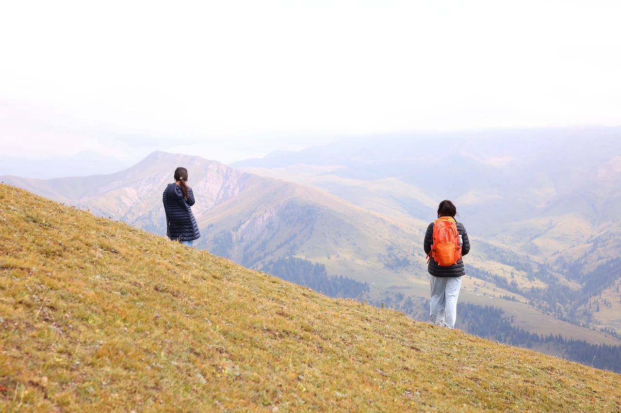 지르갈란은 해발 약 2,500미터에 자리한 마을이다. 트레킹 초반 1~2시간은 괜찮았다. 발아래로 펼쳐진 마을은 파노라마처럼 아름답게 내려다보였고, 완만한 오르막길은 오히려 걷는 재미를 더했다. 푸른 능선을 타고 부드럽게 불어오는 바람은 땀을 식혀주며 길동무처럼 곁을 지켰고, 초원의 양과 말들 또한 눈을 즐겁게 해주었다.