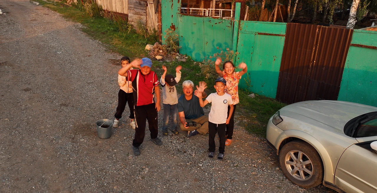 지르갈란의 아이들, 드론을 보자 모두 달려나와 인사를 한다