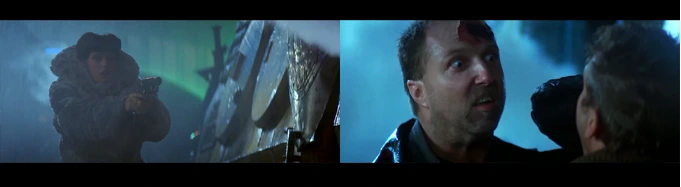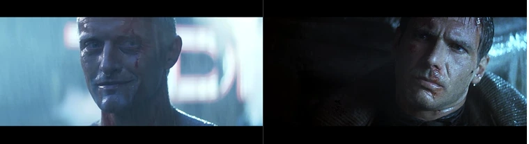 <블레이드 러너>의 하이라이트는 단연 데커드와 로이의 후반부 대결 장면이다. 로이는 자신의 죽음이 임박했음을 직감하고 데커드와 격렬하게 최후의 결전을 벌인다. 중간에 자신의 손이 마비되어가는 것을 느끼고 철심을 손등에 꽂아가면서까지 말이다. 사실 리플리컨트들은, 특히 신형 모델 넥서스6인 로이는 기본적으로 인간보다 신체능력이 월등하다. 데커드와 로이가 처음 대면했을 때, 로이가 데커드의 손가락을 가볍게 부러뜨리고 시작하는 것을 보면 짐작할 수 있다. 로이는 마음만 먹으면 한낱 인간인 데커드를(결과적으로 아니긴 하지만 이 당시 관객들은 데커드를 당연히 인간이라고 생각했을 것이다.)손가락을 부러뜨리는 그 자리에서 죽일 수도 있었다. 하지만 그러지 않았다. 그 이후 추격전에서도 로이는 계속해서 데커드를 아슬아슬하게 살려준다. 그리고 마지막에 데커드가 건물 사이를 점프하다가 실수해서 추락할 위기에 처했을 때도 결국 살려준다.
