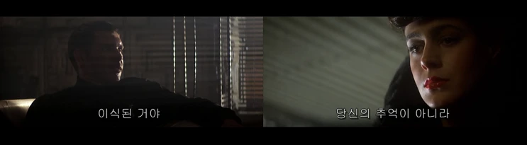 하지만 우리가 레이첼이라고 생각해보자. 그런 상황에서 우리는 자기 자신이 리플리컨트라는 것을 순순히 인정할까? 절대 아닐 것이다. 정황상 매우 혼란스러울 수는 있으나 자신이 기억하는 지금까지의 모든 삶과 희로애락들이 만들어진 가짜라는 걸 순순히 인정할 사람은 없다. 이게 인간적인 감정이다. 자신의 삶의 주체가 나라고 생각하려는 의지와 자의식. 그리고 레이첼은 우리가 당연하게 생각하는 그 인간적인 행동을 계속 보여준다.