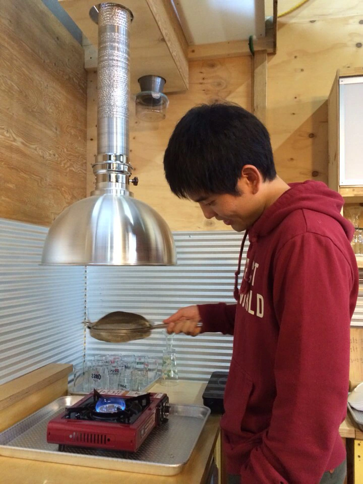 이제 준비된 콩을 수망에 넣어서 불을 약하게 켜고 수망을 흔들기 시작한다. 커피의 콩은 단단해서 센 불에 바로 볶게 되면 겉은 타고 속은 익지 않는 상태가 되는 경우가 많다. 마치 냉동 만두를 냉동실에서 꺼내어 바로 구우면 겉은 타지만 만두소는 차가운 안타까운 경우라고 할까. 생각만 해도 슬프다. 이를 방지하기 위해 수분 날리기 과정을 진행한다. 약불에서 서서히 콩을 달궈주는 것이다. 참고로 보통 로스팅을 완료한 원두는 생두의 80% 정도의 무게가 된다. 수분과 껍질이 빠진 무게가 그 정도인 것 같다. 160g 정도의 원두를 생산하고 싶다면 200g 의 생두를 준비하여 볶는다. 수분 날리기는 콩의 색깔이 서서히 변하며 껍질이 날리기 시작할 때까지 진행하며 보통 4~5분 정도 진행한다.