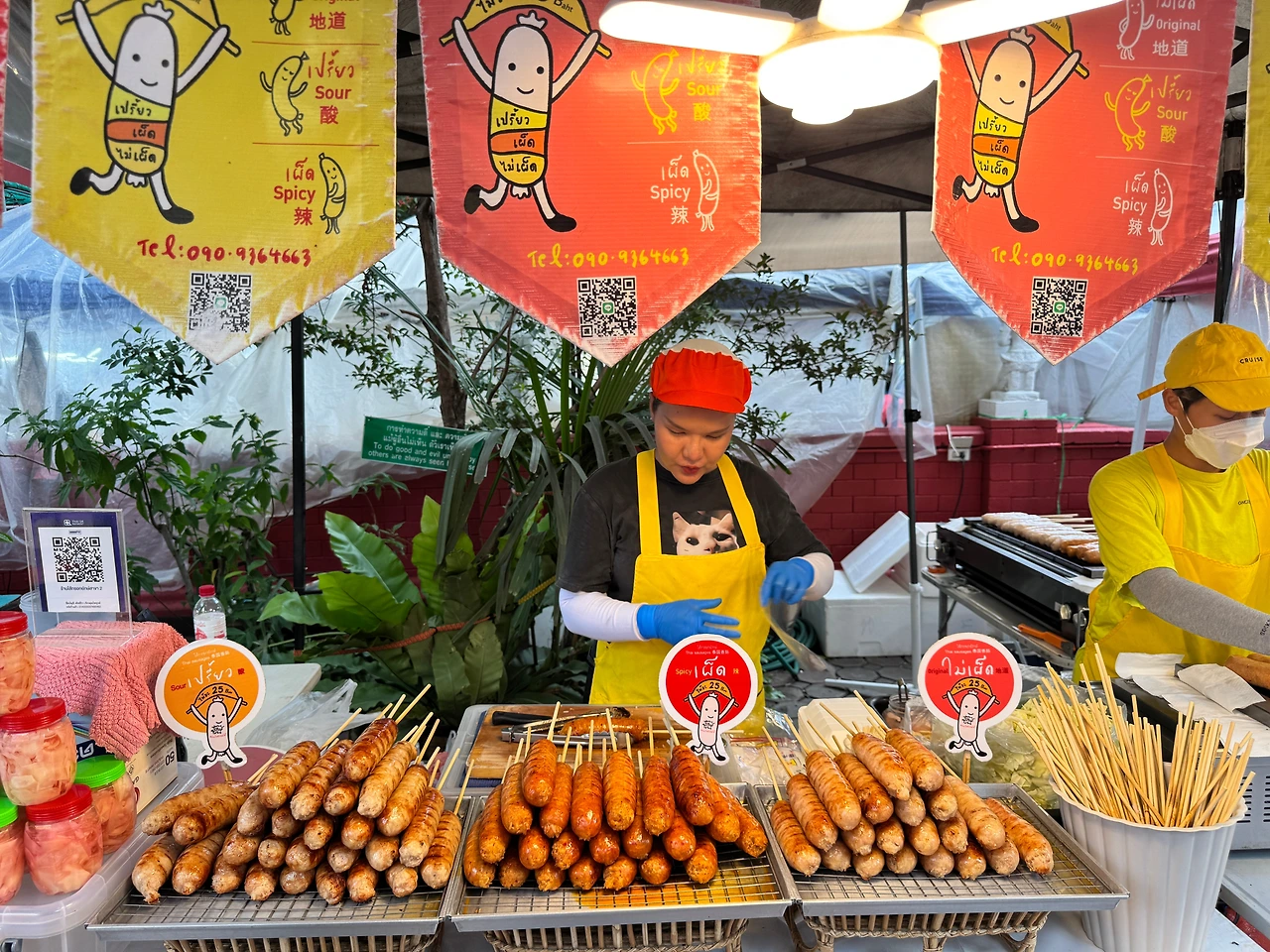 오렌지빛 노을이 거리를 감쌀 때 진정한 변화가 시작된다. 평소에는 조용한 기도의 공간이던 랏차담넌 로드의 사원들이 하나둘 음식 냄새로 가득 찬다. 스님들의 축복 속에서 현지인과 여행객들이 함께 어우러져 식사를 나누는 이 독특한 풍경은 치앙마이만의 특별한 매력이다. 수많은 사람들이 지나다니는 이 좁은 공간에서 사람들은 자신도 모르게 '사바이 사바이(편안히)'의 리듬을 배워간다. 대도시의 속도에 익숙한 발걸음들이 치앙마이의 시간 속에서 천천히 느려지고, 어느새 마음도 함께 여유로워진다. 망고 스티키 라이스의 달콤한 향과 치앙마이 전통 소시지인 사이 우아 소시지의 고소한 연기가 어우러지며, 후각의 기억들이 영혼 깊은 곳에 새겨진다. 길거리 음악가의 기타 선율과 아이들의 맑은 웃음소리, 상인들의 정겨운 대화가 하나의 자연스러운 교향곡을 만들어낸다. 이곳에서 사람들이 경험하는 것은 단순한 쇼핑이 아니라 시간에 대한 새로운 인식이다. 약 22년간 매주 반복된 이 일상의 축제는 방문객들에게 '충분히 느리게 살아도 괜찮다'는 깊은 위로를 전한다. 오후 10시 텐트들이 하나둘 정리되어도, 이곳에서 배운 여유로움은 가슴속에 오래도록 남는다.