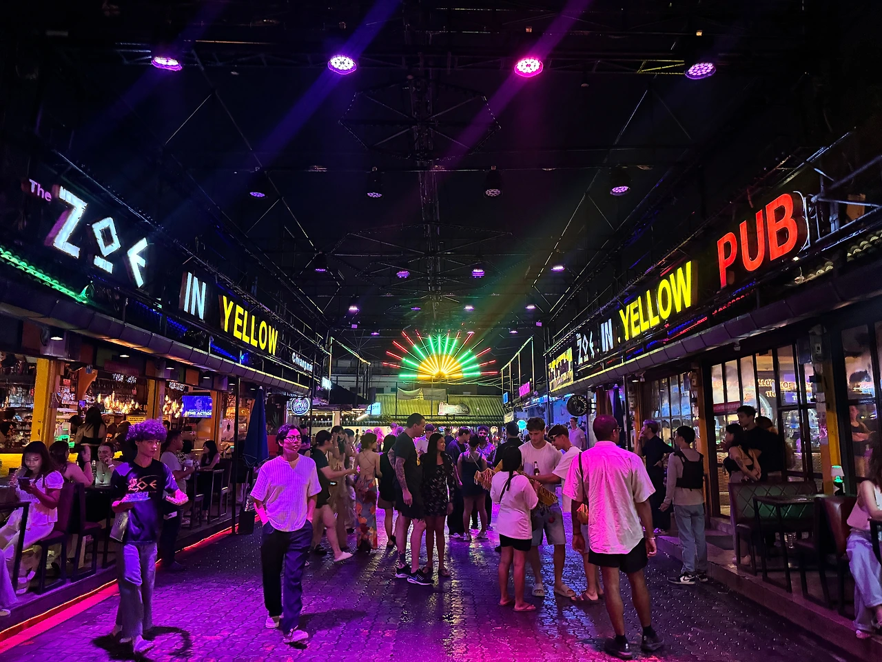 오후 10시 30분, 메인룸으로 이동하면서 느끼는 건 온도의 급격한 변화다. 에어컨이 빵빵하게 틀어진 실내로 들어서는 순간, 차가운 공기와 뜨거운 조명이 만들어내는 대비가 몸을 관통한다. 라이브 밴드가 팝록을 연주한 후 DJ가 EDM을 틀기 시작하면, 공간의 에너지는 완전히 다른 차원으로 이동한다. 베이스 라인이 가슴팍을 두드리고, 네온사인의 적색 불빛이 땀에 젖은 몸들과 뒤엉킨다. 하지만 웜업의 매력은 여기서 끝나지 않는다. 11시가 되면 올드시티로 이동해야 할 시간이다. 조인옐로우(Zoe in Yellow)에서 밤의 절정을 경험하기 위해서다.
