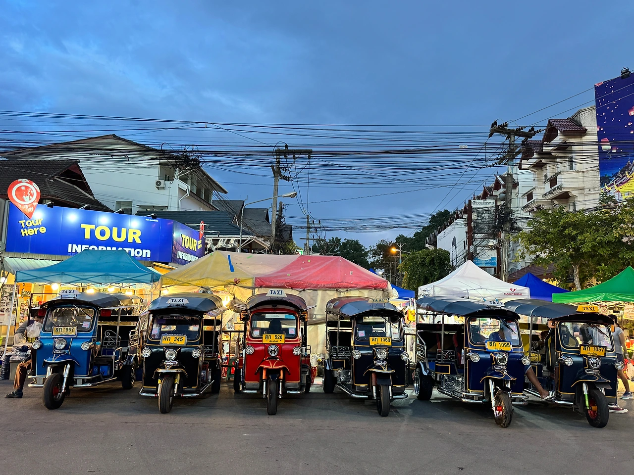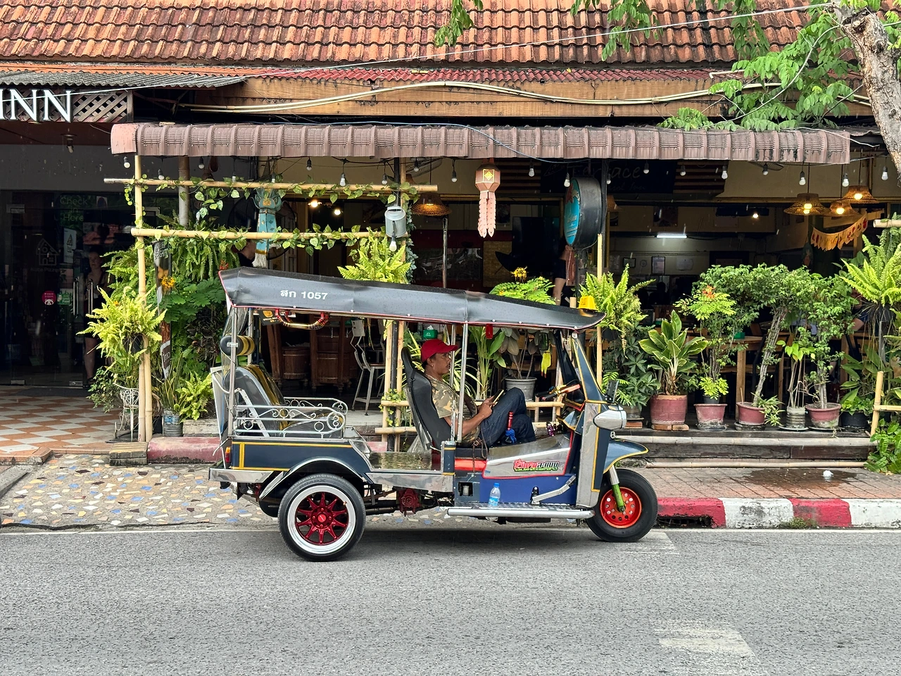 치앙마이의 아침은 송테우의 느긋함, 그랩의 편리함, 툭툭의 짜릿함이 공존하는 리듬으로 흐른다. 그리고 그 리듬은 단순한 이동이 아니라, 각자의 속도를 가진 사람들의 합창처럼 들린다. 어느 날 저녁, 노을이 도심을 천천히 붉게 물들이던 시간이었다. 그 순간, 툭툭이란 존재가 단순한 교통수단이 아님을 실감하게 됐다. 요란하고 불편하지만 멈추지 않고, 낡았지만 여전히 사람을 실어 나르는 그 모습은 이상하게도 인생의 모습과 닮아 있었다. 고장 나고 덜컹대도, 각자의 속도로 앞으로 나아가는 무엇. 그날의 붉은 노을빛 속에서, 툭툭의 진동이 오히려 따뜻한 심장 소리로 느껴졌다. 그 장면은 마치 오래된 영화 속 한 장면처럼 마음에 남았다. 때때로 전혀 예상치 못한 순간에, 조용히 떠올라 묘한 울림을 남긴다.