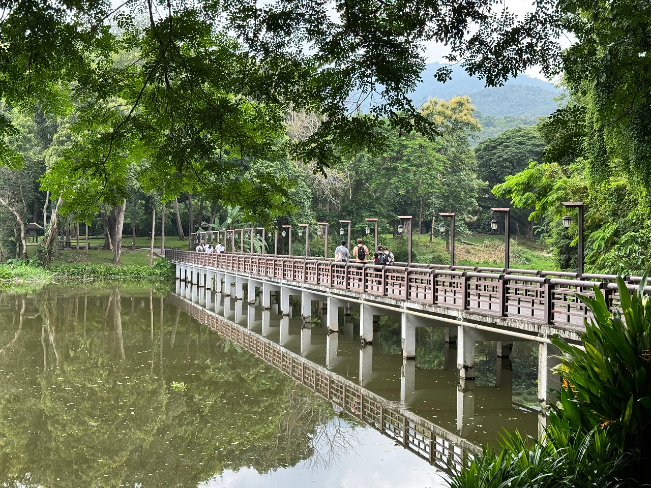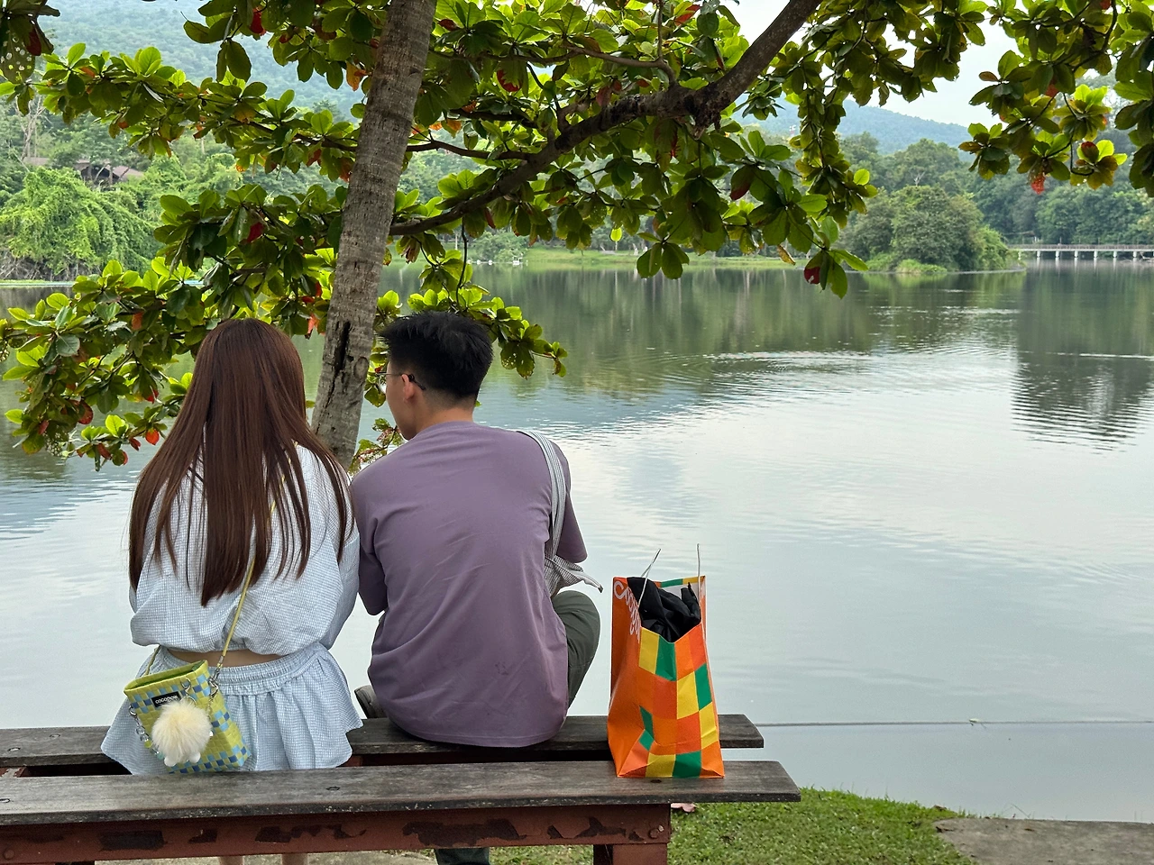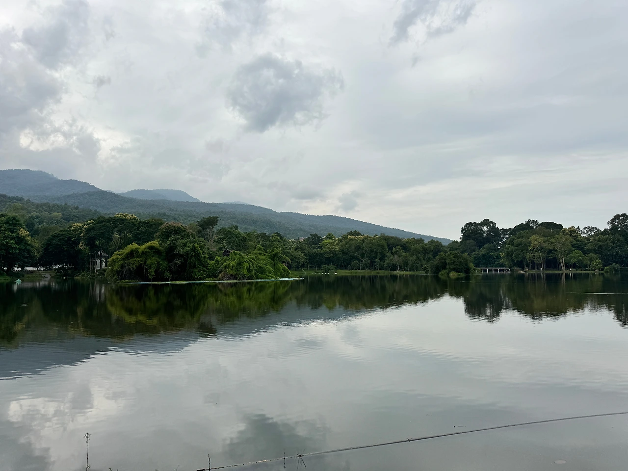 푸른 산자락이 수평선을 지우듯 누운 오후, 치앙마이대학교 앙깨우 호수는 물 위에 떠오르는 연기처럼 고요하다. 물결이 햇빛에 부서지며 만들어내는 윤슬의 파편들 사이로, 교복을 입은 학생이 호수 가장자리에서 책을 읽고 있다. 그녀의 옆에는 컴퓨터공학과 교재가 펼쳐져 있고, 태국어와 영어가 섞인 메모들이 바람에 살랑인다. 도이 수텝 산맥이 무대 뒤편의 커튼처럼 펼쳐져 있고, 산에서 불어오는 바람이 호수에 잔잔한 물결을 그린다. 나무 그늘 아래 앉으니 마음의 시간이 여유로워진다. 이곳은 태국 최초의 지방 종합대학이 세워지며 함께 조성된 인공호수지만, 지금은 60년의 시간이 켜켜이 쌓여 자연과 구별할 수 없을 만큼 완성된 풍경을 이루고 있다.