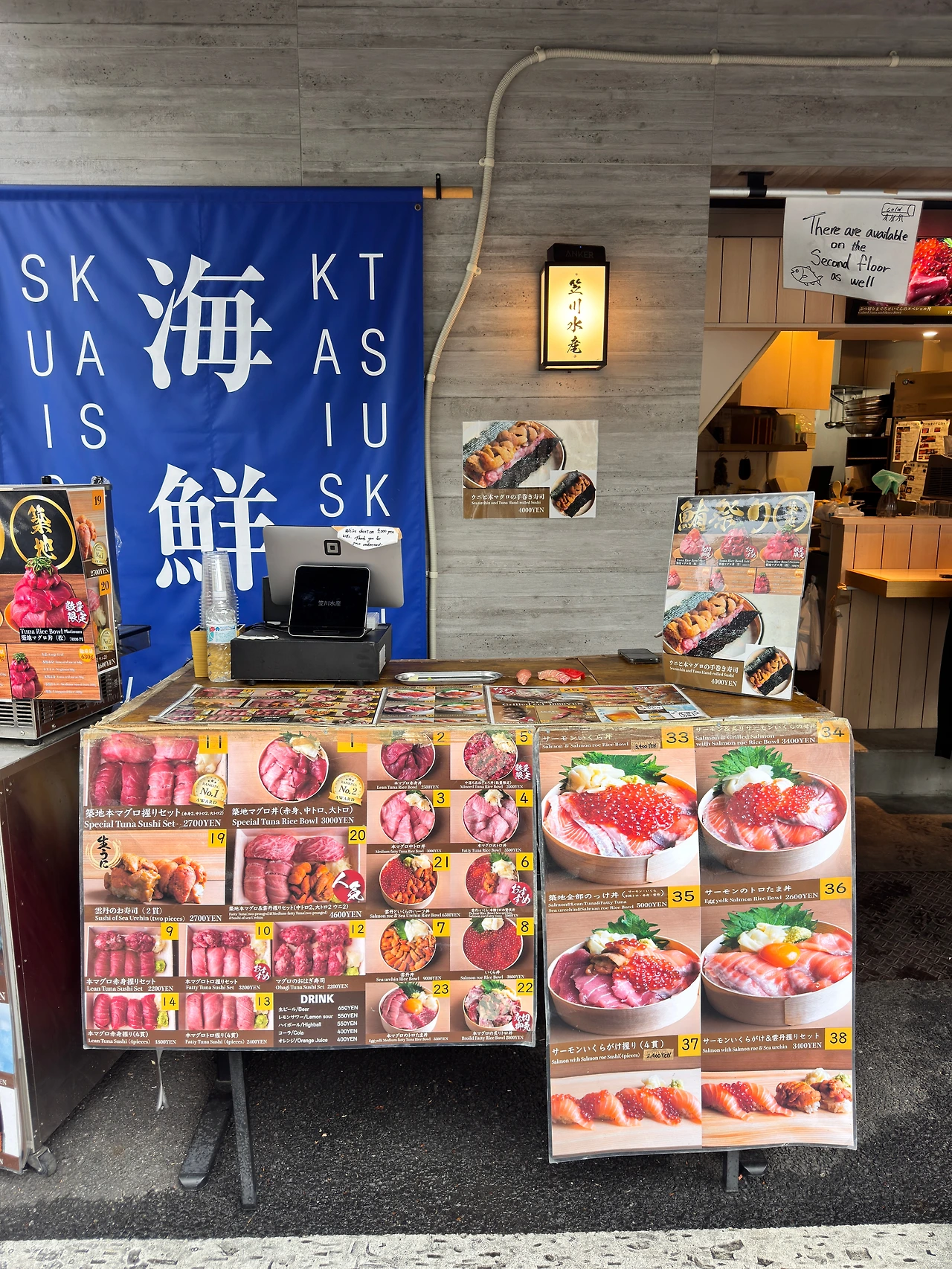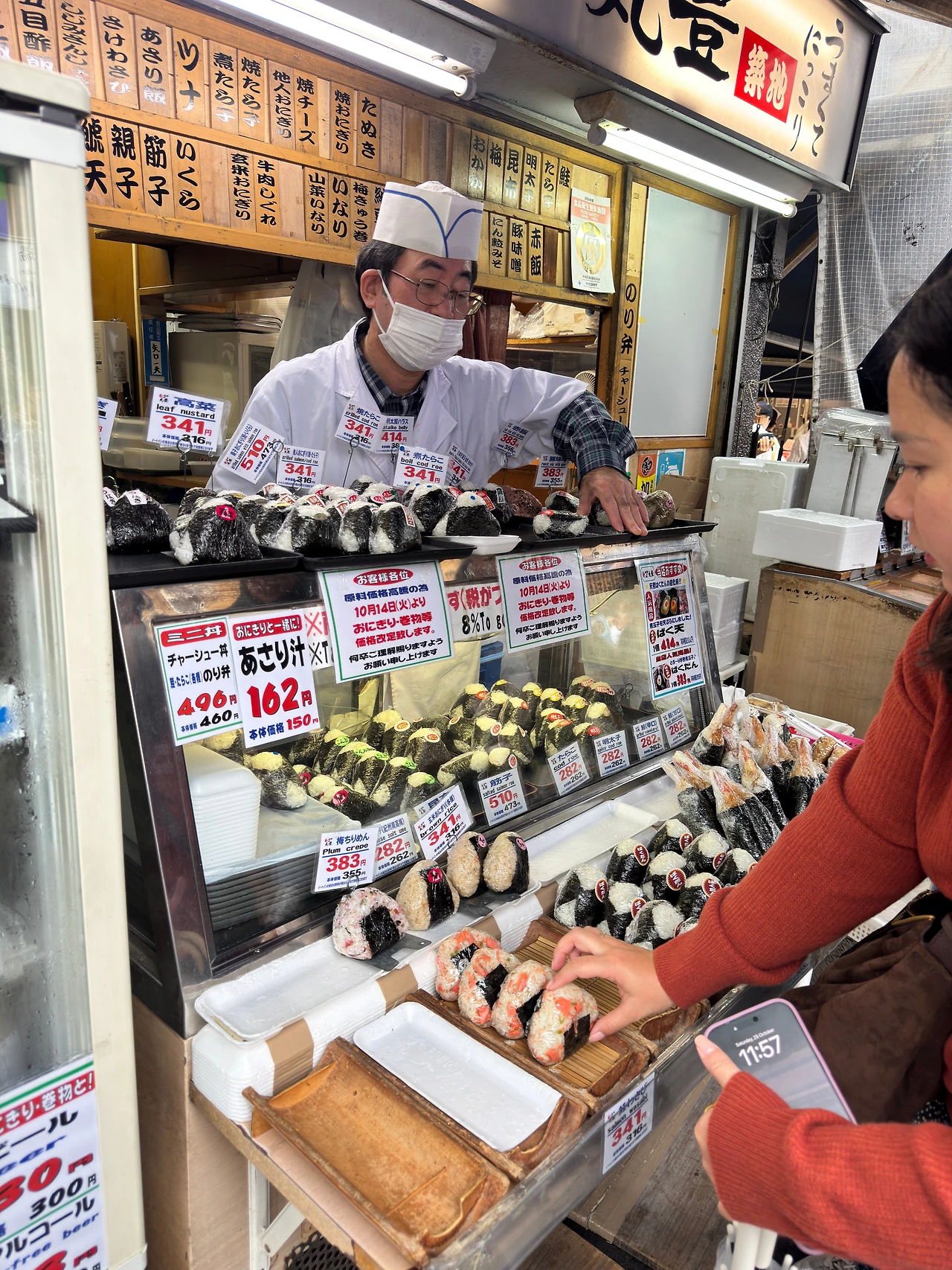 츠키지에는 이야기가 있다. 한 여행자가 좁은 골목을 걷는다. 습한 공기가 뺨에 닿는다. "すしざんまい(스시잔마이)" 간판이 눈에 들어온다. 보라색 차양 아래로 형형색색의 메뉴판이 걸려 있다. 참치, 성게, 연어알이 밥 위에 얹힌 사진들. 흰 셔츠에 검은 조끼를 입은 직원이 입구에서 메뉴판을 들고 외친다. "いらっしゃいませ!(어서오세요!)" 목소리들이 겹친다. 주문받는 소리, 칼질 소리, 웃음소리. 이것이다. 사람들이 츠키지를 찾는 이유다. 깔끔한 현대식 시설이 아니라, 90년이 쌓인 골목의 온기가 있다. 발걸음이 다시 멈춘다. 어느 해산물 덮밥집 앞. 회색 콘크리트 벽면을 메뉴판이 거의 덮고 있다. 층층이 쌓인 플라스틱 필름 뒤로 참치, 성게알, 연어알 사진들이 색이 바래간다. 숫자가 매겨진 메뉴들. 각 번호마다 다른 조합의 해산물 덮밥. 선택의 즐거움과 혼란. 이 순간을 위해 사람들은 비행기를 탄다.