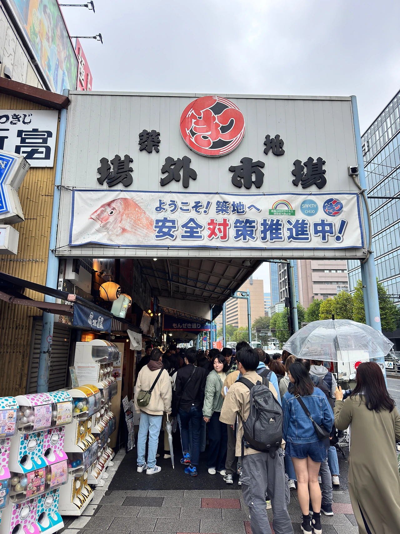 도쿄 히비야선 츠키지역을 빠져나온 순간, 바다 냄새가 코를 찌르듯 하다. 싱싱한 생선, 숯불에 그을린 가다랑어포, 그리고 신선한 어패류의 비릿하면서도 깨끗한 향. 이 모든 것이 뒤섞인 공기가 여행자를 시장 입구로 이끈다. 도쿄에 온 사람이라면 누구나 한 번쯤 이 냄새를 찾아온다. 흰색 건물 위로 붉은 원형 로고가 빛난다. 그 아래 검은 한자로 "築地場外市場(츠키지 장외시장)"이라 새겨져 있고, 파란 선으로 그려진 횟감 그림과 함께 "ようこそ! 築地へ(환영합니다! 츠키지로)"라는 배너가 걸려 있다. 그 아래로 각양각색의 사람들이 끊임없이 밀려든다. 어깨가 부딪히는 소리, 발걸음이 엉키는 소리, "すみません(스미마셍)"이라는 양해의 말들이 겹친다. 세계 어디서든 도쿄 여행 가이드북을 펼치면 츠키지가 있다. 새벽 다섯 시부터 오후 두 시까지. 이 짧은 시간 동안 츠키지는 숨 가쁘게 돌아간다. 이곳에서 시간은 단순한 시간대가 아니라 하나의 순례다.