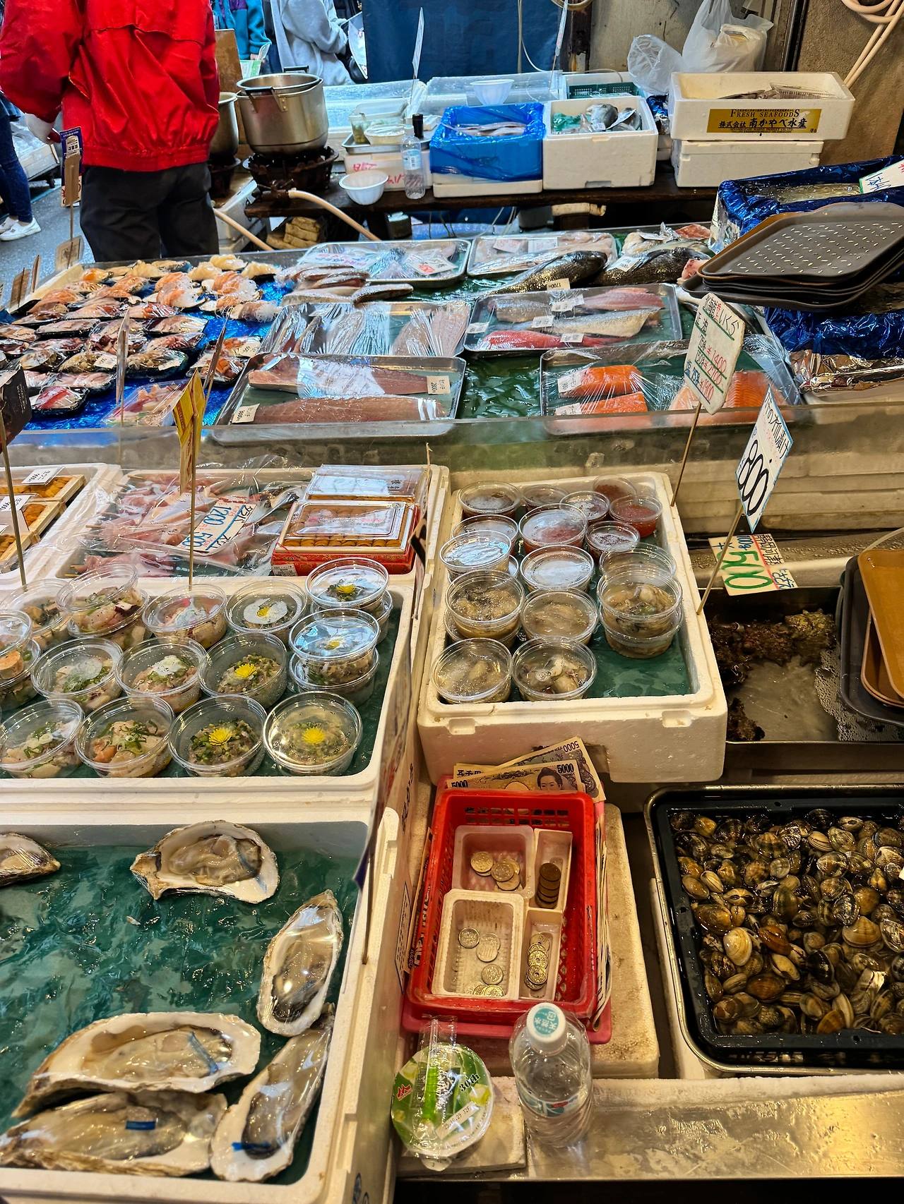 츠키지는 도쿄 여행의 선택지가 아니다. 필수다. 츠키지에서는 도쿄의 깊이를 맛본다. 시부야 교차로에서는 현재의 도쿄가 지나가지만, 츠키지에서는 과거와 현재가 한 그릇에 담긴다. 사람들이 여전히 이곳을 찾는 이유를. 그것은 단순히 신선한 생선회를 먹기 위해서가 아니다. 세계 어디에나 좋은 수산시장은 있다. 하지만 시간이 쌓인 장소는 드물다. 변화하면서도 변하지 않는 것, 사라지면서도 남는 것을 목격할 수 있는 곳은 더욱 드물다. 마주 보는 붉은 물고기 로고 아래로 방문객들이 계속 들이닥치고. 오늘도, 내일도 직원들은 여전히 메뉴판을 들고 외친다. 츠키지는 더 이상 도쿄의 부엌이 아닐지 모른다. 하지만 여전히 도쿄의 시간이 조리되는 곳이다. 도쿄에 온다면, 츠키지를 들려보자. 화려한 명소를 수집하는 일이 아니라, 한 도시의 시간을 마주하는 일. 해산물 덮밥 하나를 먹고, 칼질 소리를 듣고, 계란말이 냄새를 맡으며, 그 순간만큼은 겹겹이 쌓인 90년 속에서 함께 숨 쉬는 것. 이것이 여행의 즐거움이다. 관광이 아니라 체험. 사진이 아니라 기억. 그리고 그 시간의 맛이다.