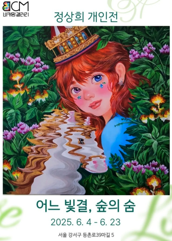 서울 강서구의 조용한 골목, 비커밍 갤러리의 유리문을 지나자마자 가장 먼저 시선을 끈 것은 커다란 소녀의 눈동자였다. 그녀는 빛의 숲 속에서 유니콘과 함께 나를 응시하고 있었다. 물결에 일렁이며 자신의 얼굴을 비추는 그 모습은 마치 나 자신을 마주하는 듯한 느낌을 주었다.