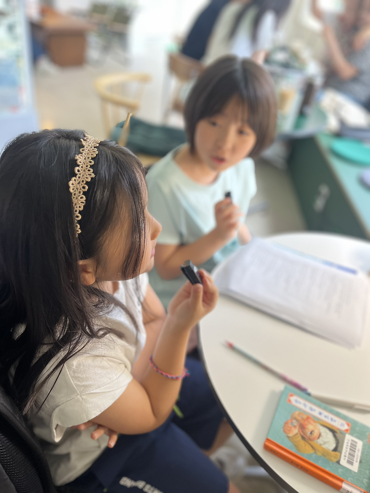 책을 추천하고, 퀴즈를 내고, 친구에 대해 궁금한 점을 직접 묻고 듣는 일련의 과정 속에서 아이들은 단순히 책을 소개하는 것을 넘어, 자신의 생각을 정리하는 법, 말을 조리 있게 전하는 법, 친구의 이야기를 경청하고 존중하는 태도까지 배우고 있었다. 가장 인상 깊었던 장면은 팥빙수를 나눠 먹으며 서로의 추천 책 이야기에 귀를 기울이던 순간이다. “이 책 진짜 웃겨요! 밤에 읽다가 엄마한테 혼났어요!”라며 순수한 웃음을 터뜨리던 아이, “이 책 읽고 친구랑 더 친해졌어요”라고 말하던 아이. 그 한마디 한마디에 진심이 담겨 있었고, 그 진심은 듣는 이의 마음도 따뜻하게 만들었다.