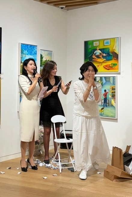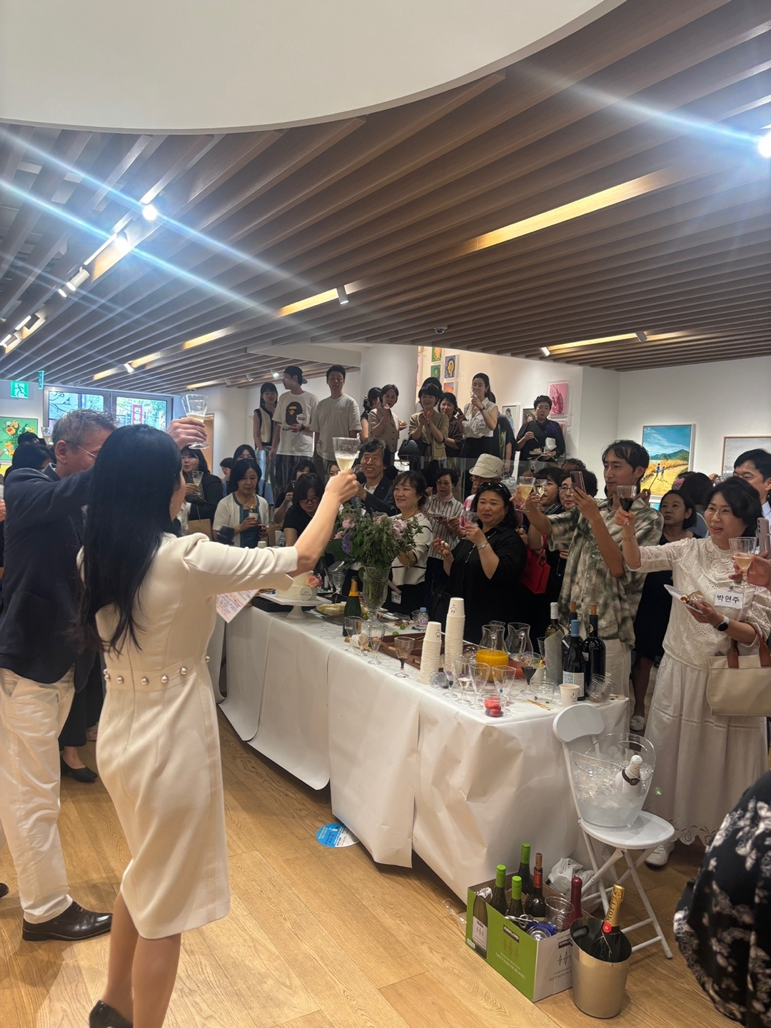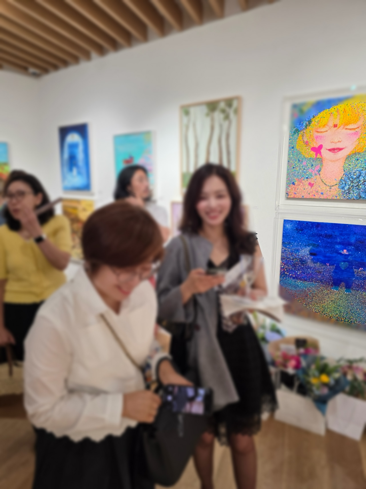 이번 전시는 ‘아름다운화실’에서 주최했고, 그동안 이 화실에서 활동해 온 수많은 작가들이 함께하고 있어. 참여 작가 중에는 배우 하희라, 이태란 씨를 포함해 전문작가, 전문직, 교육자, 기획자, 생활 예술가 등 다양한 이력이 교차하는 사람들이 많아. 각자의 작업과 색이 다르고, 시선도 다르지만 이 전시에서는 누구도 중심이거나 주변이 되지 않아. 전시장 전체가 하나의 흐름처럼 구성되어 있고, 그 안에 나의 작품도 하나의 조각으로 놓여 있어.