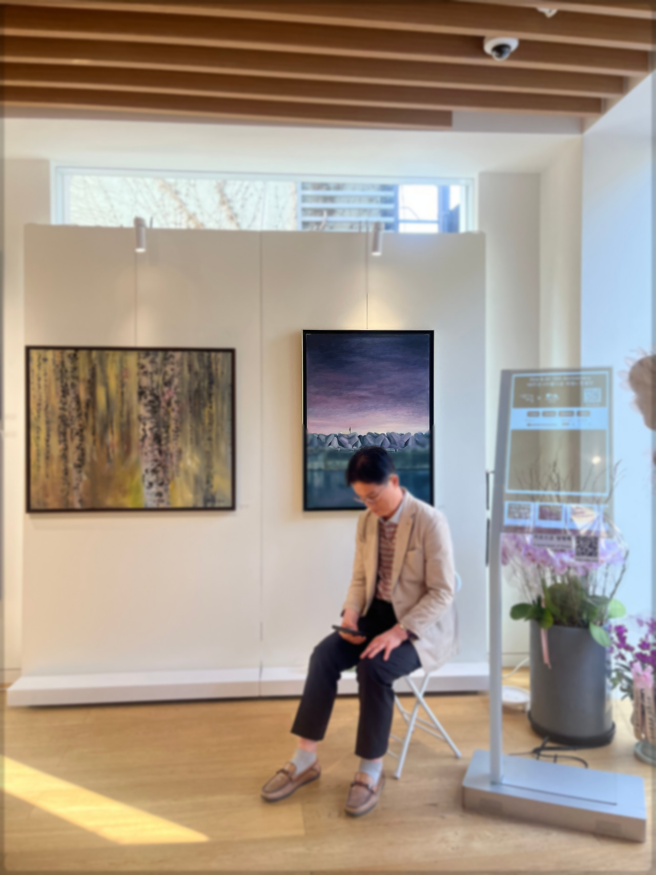 나는 내 그림이 특별히 눈에 띄는 위치에 있다거나, 어떤 평가를 받고 있다는 생각보다는 그림 자체가 이 공간에 어울리는지를 관찰하며 지내고 있어. 그림을 그릴 때보다 그림이 걸린 이후의 시간이 오히려 더 많은 질문을 던지고 있어. "이 작업은 지금 어떤 맥락에 놓여 있는가." "함께 걸린 작품들과 어떤 균형을 이루고 있는가." "이 전시는 나에게 어떤 장면으로 기억될 것인가."
