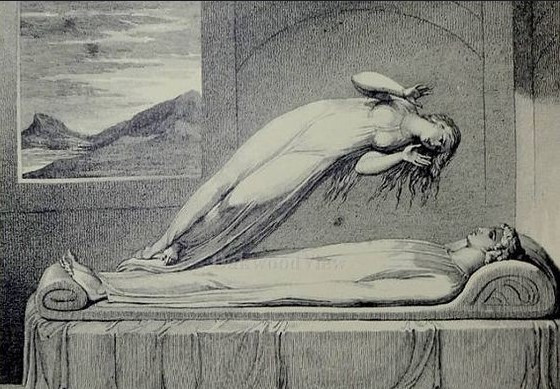 또 하나의 그림은 윌리엄 블레이크의 <삶과 작별하기 싫어서 죽은 신체 위를 떠도는 영혼> 1805이다. 누워 있는 육체 위로 하얀 영혼이 부드럽게 떠오르는 몸은 멈추어도 존재는 계속된다는 메시지를 전한다. 그림 속 영혼은 두려움이 아니라 차분한 표정으로 위를 향한다. 이는 우리에게 말한다. “나는 단지 몸을 떠날 뿐, 사라지지 않는다.”