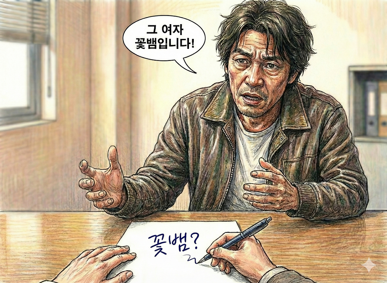 박 씨가 내뱉는 ‘꽃뱀’이라는 단어는 자신의 추악한 욕망을 가리기 위해 빌려온 비겁한 방패에 불과했다. 그 방패 뒤에 숨어 그는 자신의 행위를 정당화하고 있었다.