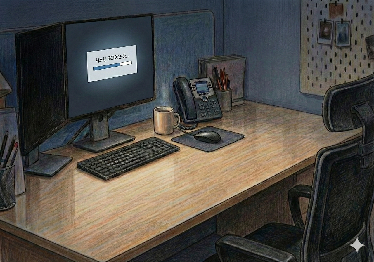 시계바늘이 깊어질수록 사무실의 공기는 농밀해진다. 전산에 입력된 숫자들은 차갑지만, 그 숫자를 만들어낸 이들의 삶은 너무나 축축하고 끈적하다. 그 괴리를 메우기 위해 우리는 밤마다 눈을 부릅뜨고 기록을 이어간다.