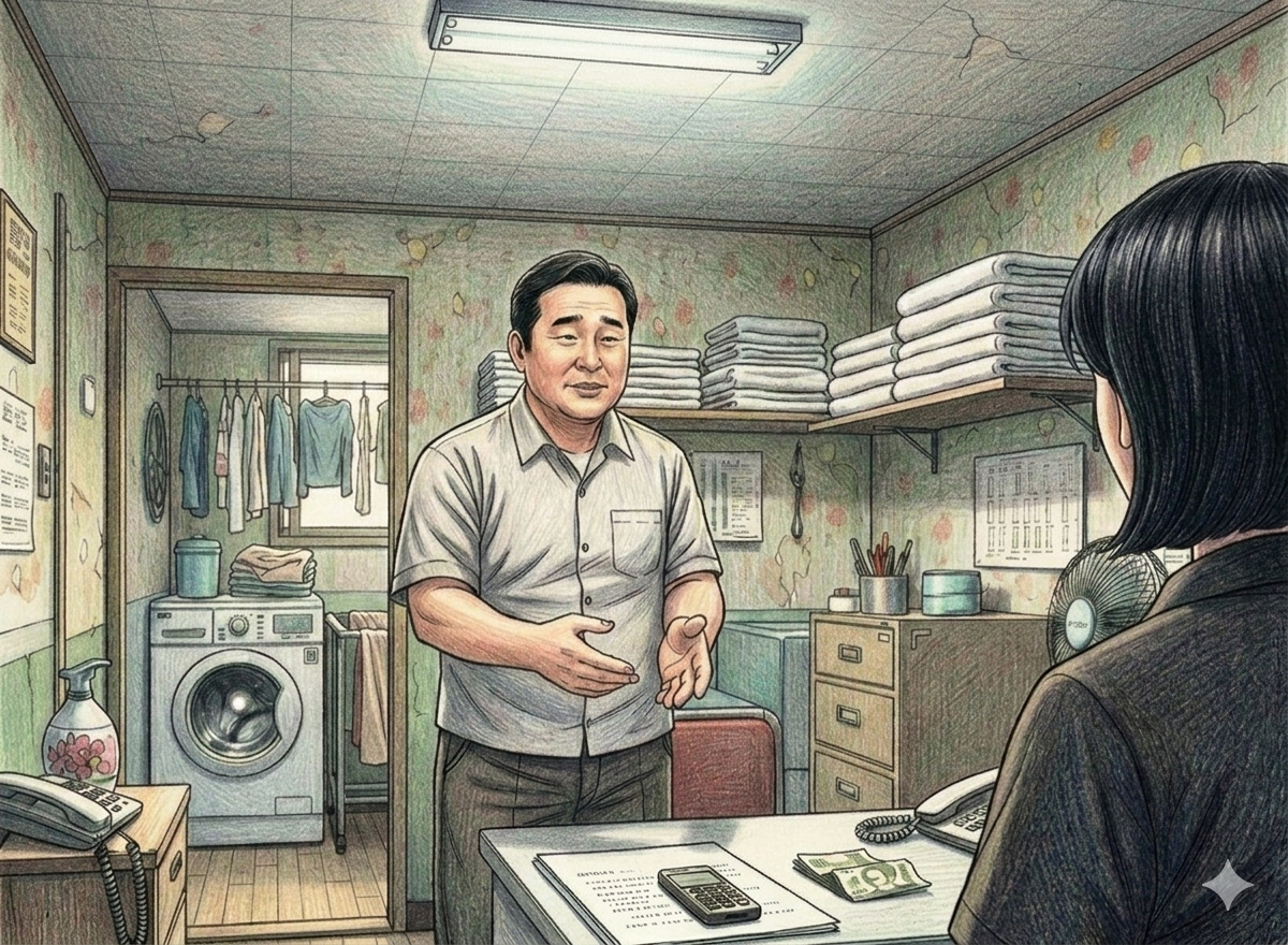 화려했던 경력은 해고와 함께 끝이 났고, 연이은 사업 실패로 12억의 빚만 남았다. 이제 그는 형님이 운영하는 모텔에서 방을 치우고 시트를 빠는 청소부로 산다.