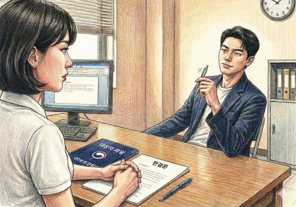 그는 익명의 채팅방 뒤에 숨어 누군가의 일상을 도려냈던 디지털 성착취물 가해자다. 누군가의 고통을 유희로 즐겼던 그의 손가락은, 이제 비싼 볼펜을 신경질적으로 굴리며 나의 인내심을 시험하고 있다.