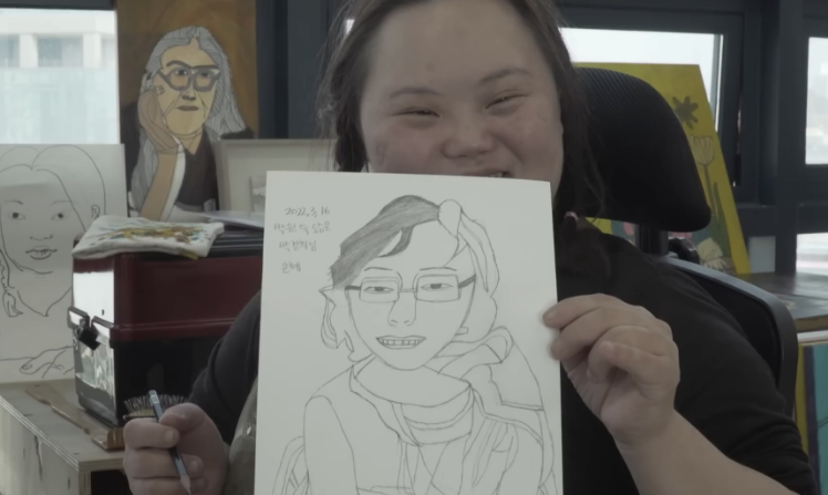 사진 설명> 다운 증후군 배우이자 캐리커쳐 작가 정은혜 씨. 특유의 사랑스럽고 밝은 에너지로 드라마에 출연하였고, 캐리커쳐 작가로도 활발히 활동 중이다.