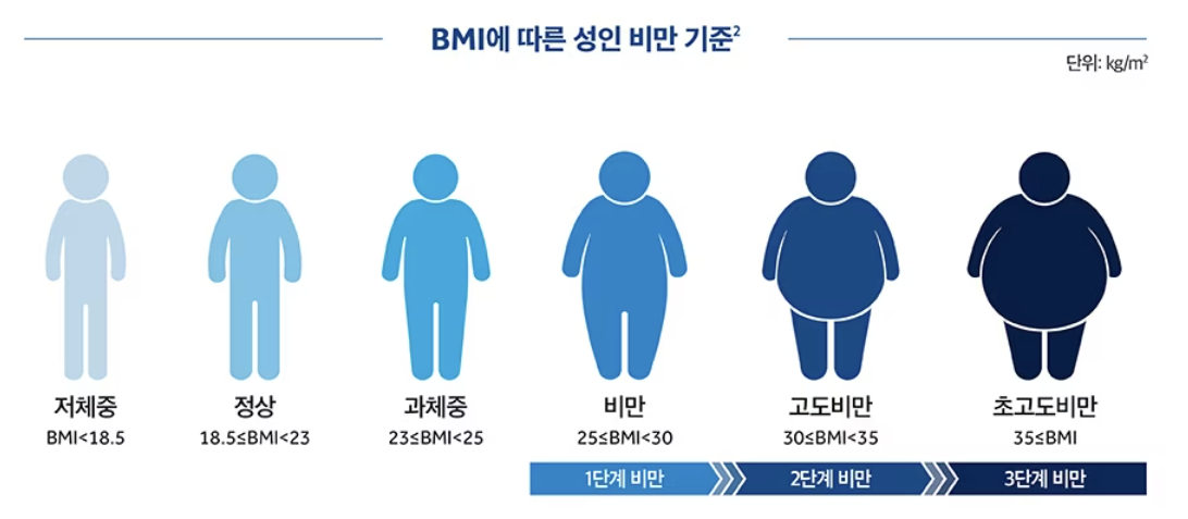 BMI가 5(kg/m²) 상승할 때마다 사망 위험이 29% 증가한다고 알려져 있습니다.