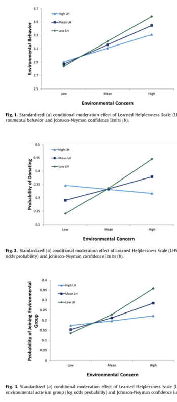 Landry, N., Gifford, R., Milfont, T. L., Weeks, A., & Arnocky, S. (2018). Learned helplessness moderates the relationship between environmental concern and behavior. Journal of Environmental Psychology, 55, 18-22.