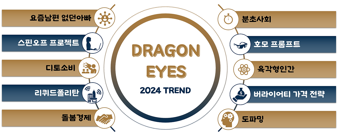 갑진년 청룡의 해를 맞아 용의 눈, 화룡점정에서 따온 10가지 키워드로 표현한 2024년 전망. 그 중 인상깊었던 트렌드 위주로 리뷰를 해보고자 한다.