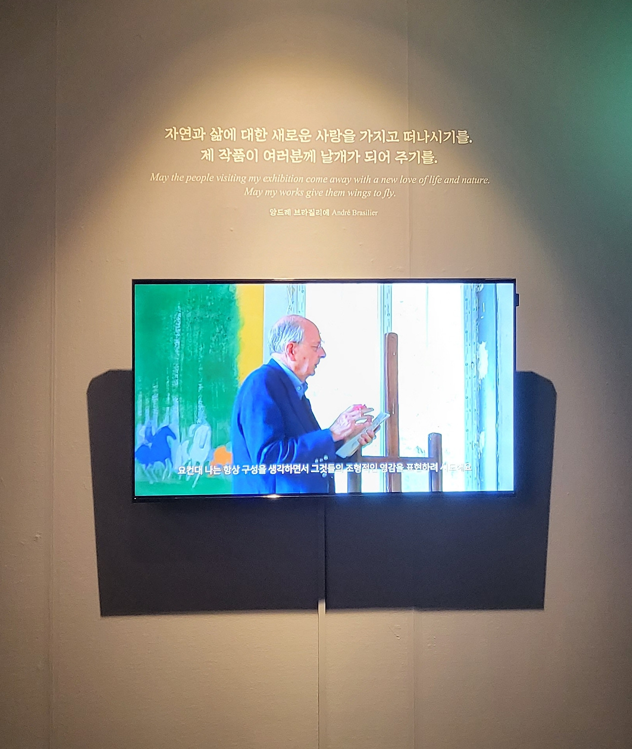 전시회는 사진 촬영이 금지였는데 마지막 스크린이 있는 곳에서 작품 사진이 아니니 괜찮겠지 하고 담아 온 문구. 자연과 삶에 대한 새로운 사랑을 가지고 떠나시기를. 제 작품이 여러분께 날개가 되어 주기를. 작가의 바람이 나에게 와서 통했다.