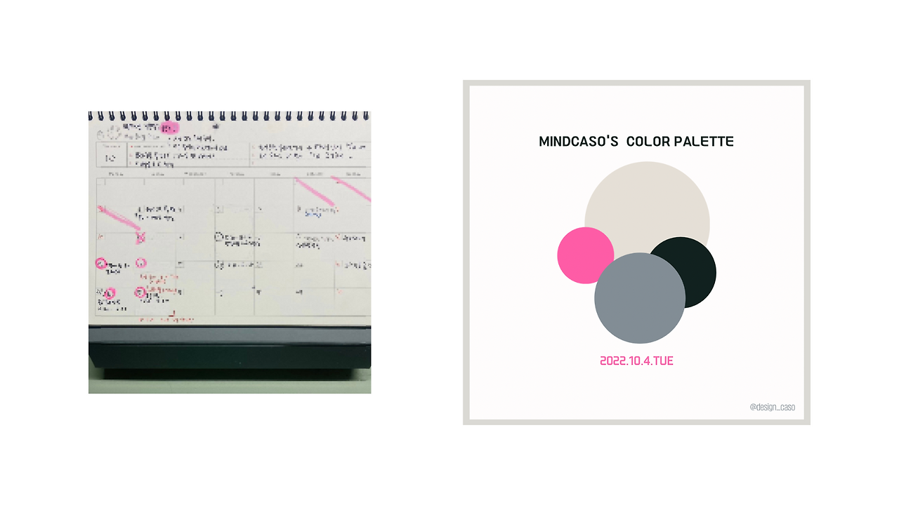책상 달력에 지난 날짜는 사선으로 긋거나 기억해야 하는 날은 강조해서 동그라미 친 형광 핑크색, 나의 중요한 스케줄로 남편이 연차를 써야 하는 날의 표시에 시선이 머문다. 무채색 배경에 핑크색이 포인트가 되어 더욱 강조된다. 작지만 확실하게 튀는 느낌. 달력 안에서 만큼은 존재감이 가득하다. '이 날을 잊지 말아 줘!'라고 외치는 것 같아서 어쩐지 귀엽기까지 하다. 나 역시 이 핑크색처럼 오늘 내가 할 수 있는 작지만, 존재감 있는 행동을 상상해본다. 언제, 어디에서, 누구에게? 어떻게? 뭐가 좋을까?