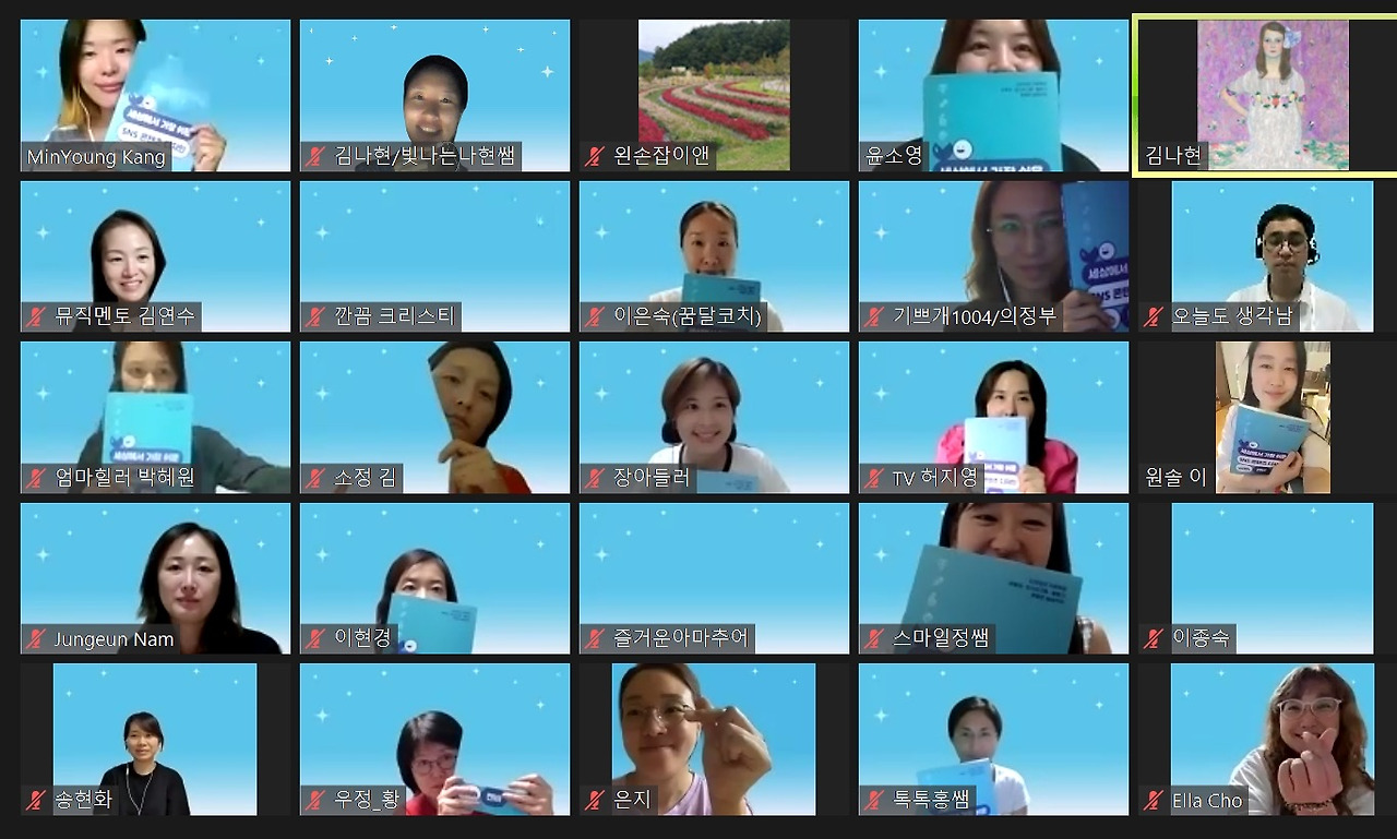 80-90여 명의 줌 화면의 배경을 밝은 파란색으로 물들었다. 단체복을 입은 것처럼 같은 컬러는 하나로 묶어주는 역할을 했고, 한 여름밤을 시원하게 식혀주는 효과도 있었다.