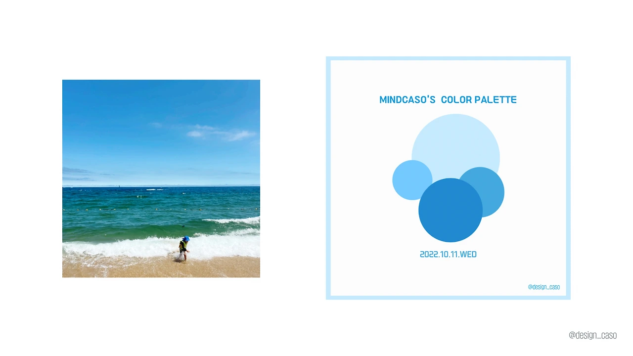"창의적 사고, 고요함, 침착함"에 도움이 된다는 밝은 파랑. 단순히 디자인 규칙이나 캔바 사용 법이 아닌 창의적 사고 혹은 그러한 작업에 대한 소통을 하고 싶었는지도 모르겠다.