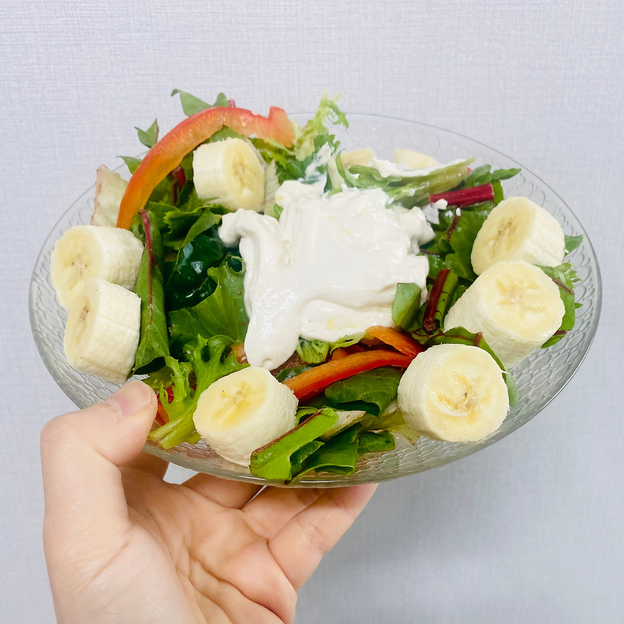 바나나나 사과 등 집에 과일이 있다면 곁들이면 더 좋다. 두부 크림소스에 쿡 찍어서 먹으면 최고!
