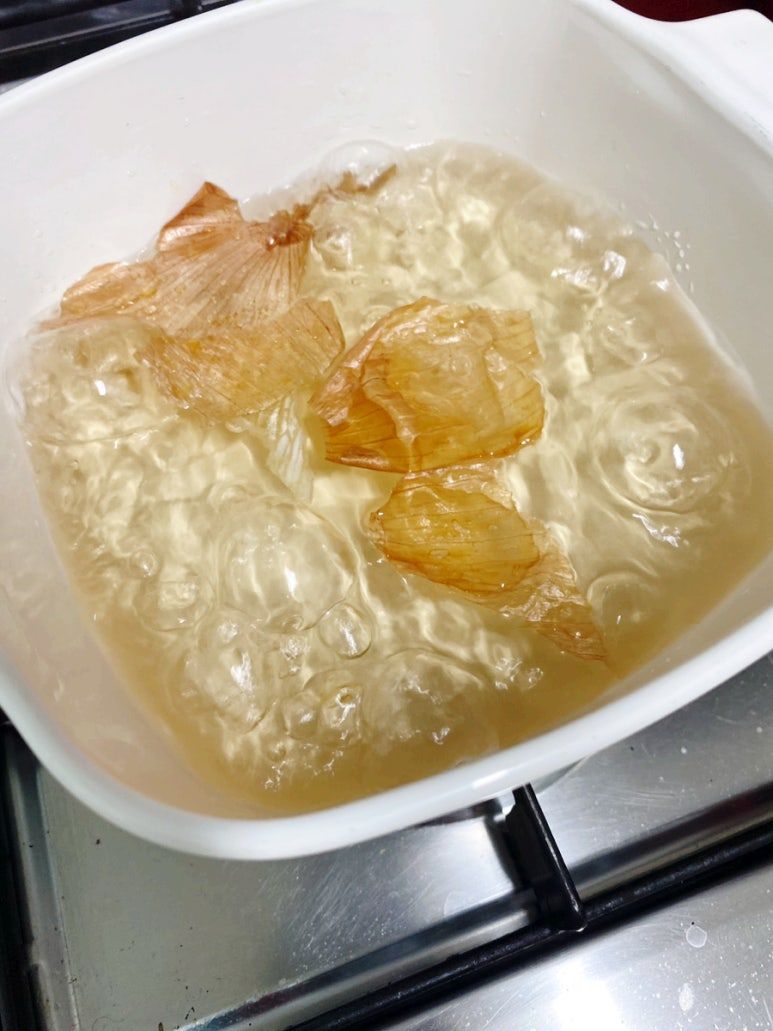 원래 육수로 요리하던 때는, 멸치도 넣고 다시마와 건새우를 넣기도 했는데, 야채 요리를 시작하면서 양파껍질과 다시마만 넣어서 만들었다. 하필 이 날은 다시마도 똑 떨어져서 양파껍질만 넣어서 조리 시작-
