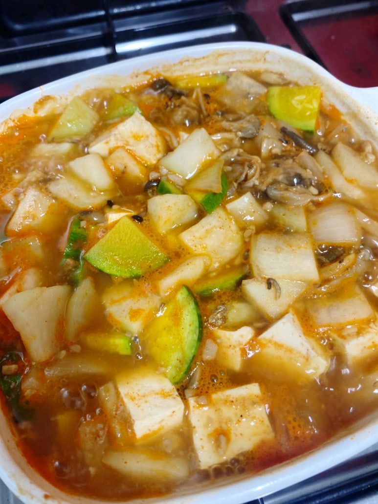 된장과 고추장을 같이 풀어서 약간 칼칼한 스타일로 만들었다.