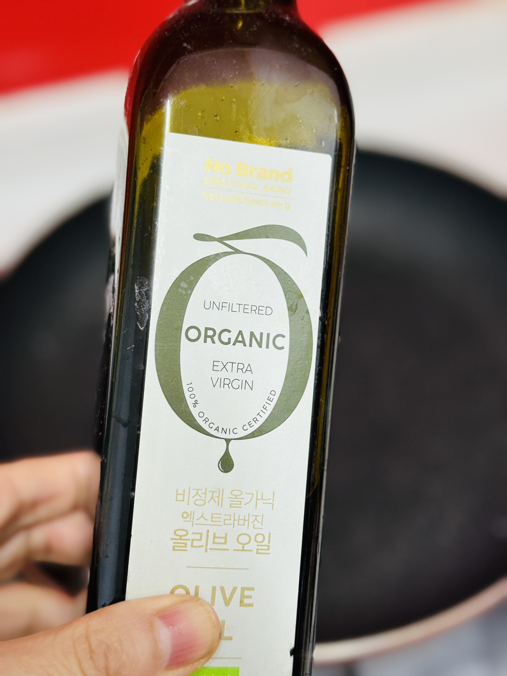 5. 프라이팬에 올리브 유를 두르고 난 뒤