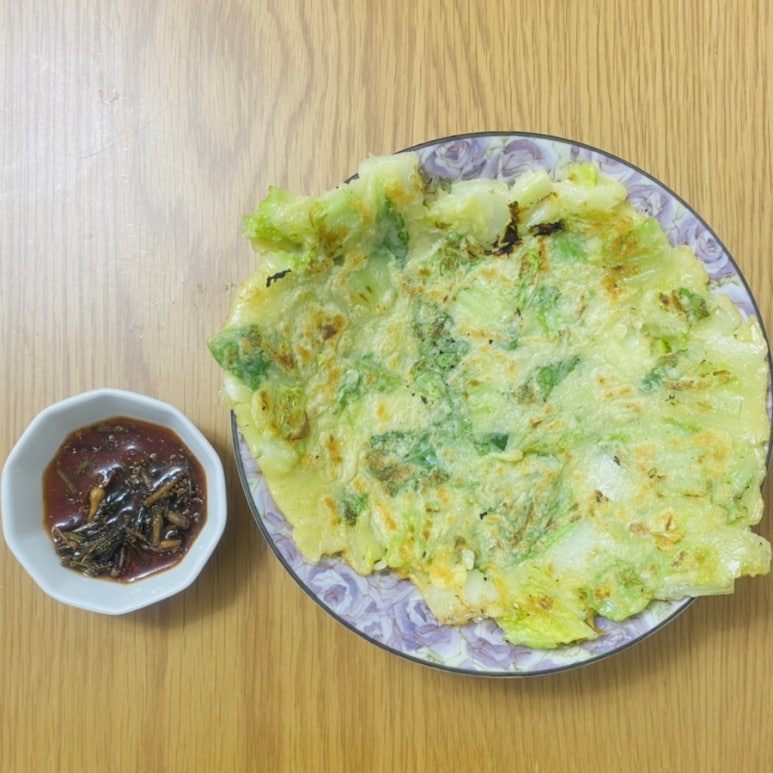 할머니는 커다랗게 배추 한 잎씩 부침개로 만드셨지만, 얼렁뚱땅 만드는 나는 엄두가 나지 않는다. 할 수 있는 방법으로 하자.