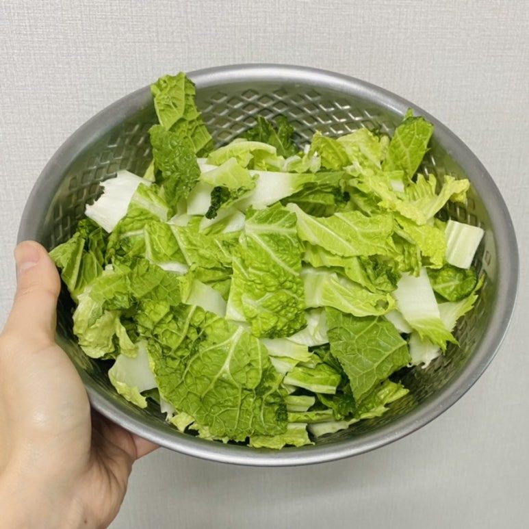 1. 배추를 흐르는 찬 물에 씻고, 쫑쫑쫑 썬다.