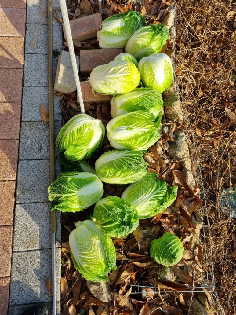 김장철이다. 시부모님이 일구시는 밭에서 자란 배추들. 대체로 김치를 담글 예정인데, 그 외에 작거나 김치를 만들기 애매한 배추들은 따로 모아서 주셨다. 야채를 좋아하는 나로서는 너무 좋다.