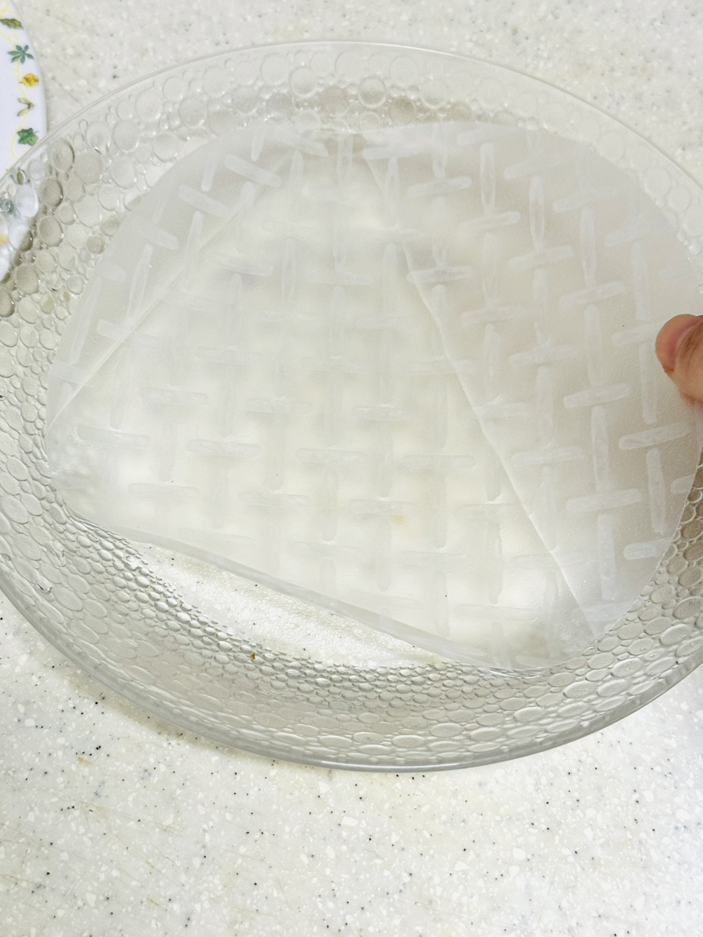 4. 물을 끓이고 따듯한 물에 라이스페이퍼 적셔주기