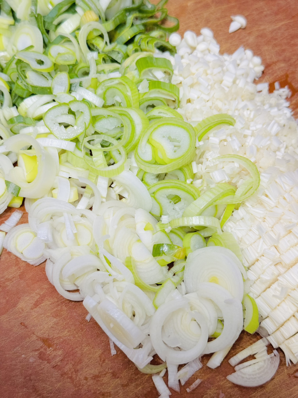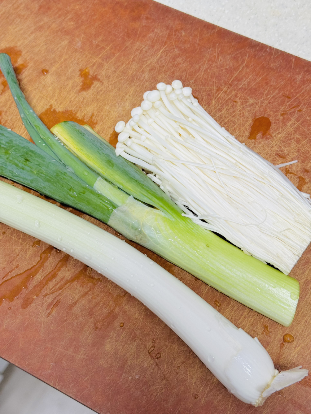 1. 대파와 팽이버섯은 깨끗이 씻어서 쫑쫑쫑 썬다