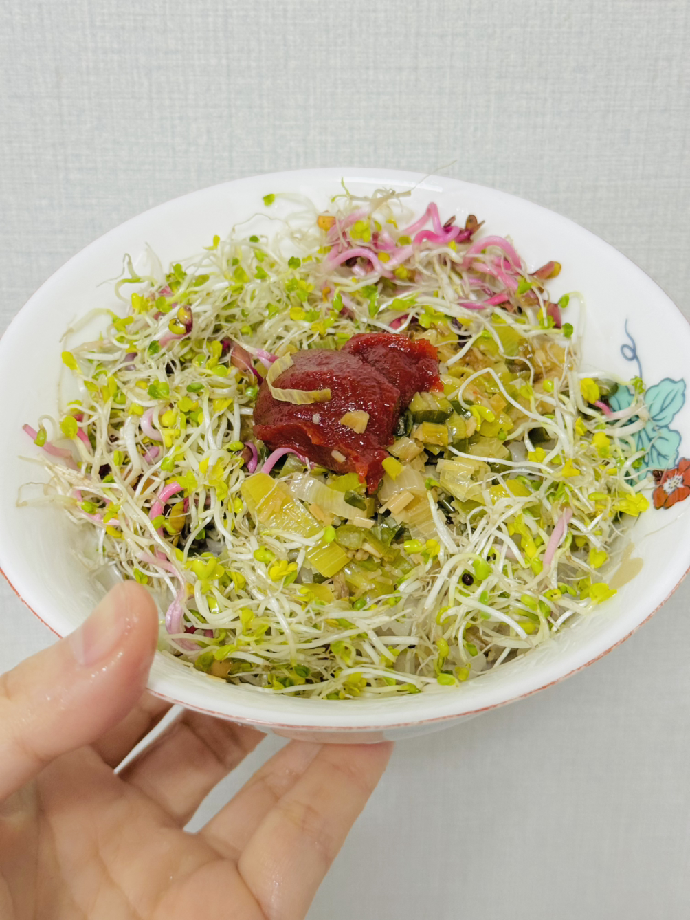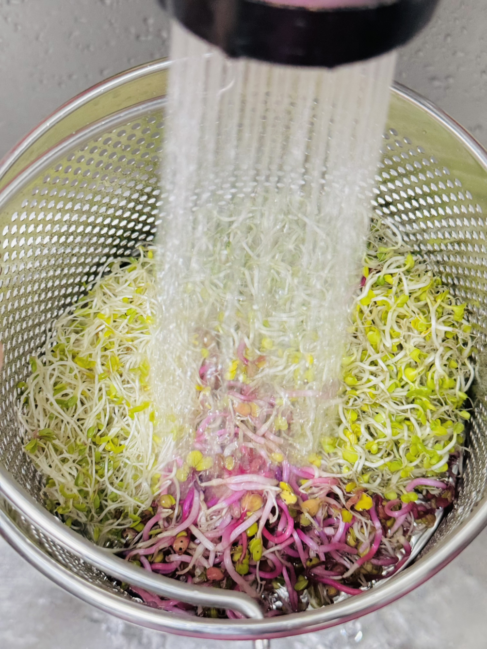 9. 비빔밥 버전 2는 새싹 야채를 깨끗하게 씻어서