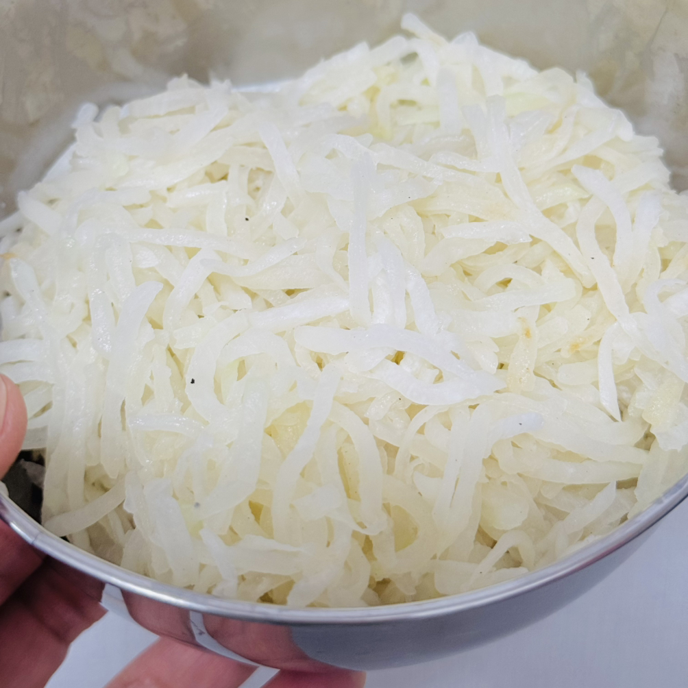 3. 무가 다 익었으면 그릇에 옮겨둔다. 달큰무 군만두의 소 완성!