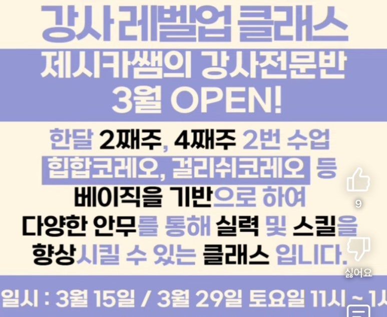 월 2회 진행되는 토요일 수업 안내 중 내 마음을 단번에 사로잡은 단어가 있었으니 바로 ‘힙합 코레오’와 ‘걸리쉬 코레오’였다.