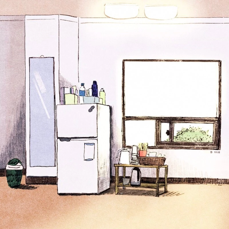 시선을 따라 천천히 공간을 둘러보았다. 낡은 붉은색 소파, 사무실에서 사용했을 법한 어울리지 않는 파티션, 뒤로 놓여있는 옷걸이, 선반 위의 컵라면, 벽 쪽의 사물함, 그 칸마다 붙어있는 이름들, 작은 냉장고, 커다란 선풍기, 가지런히 놓여있는 아령... 컵라면 빼고 모두 오래된 것 같았다. 그 세월의 흔적이 이 공간에 처음 온 나를 조금씩 편안하게 했다.